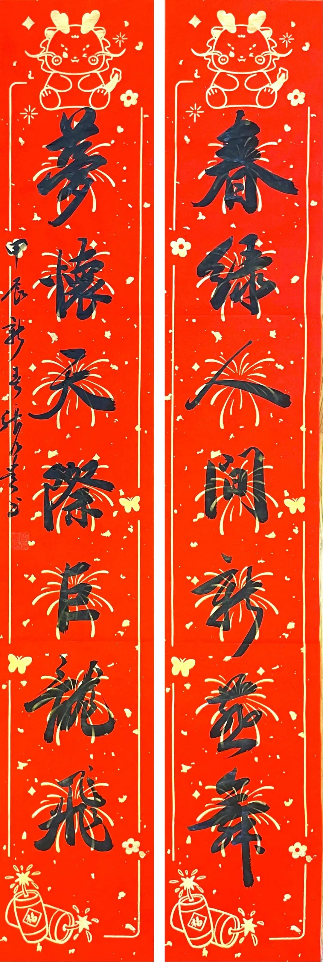 张乃贵: 龙年在中国传统文化中拥有丰富而美好的寓意,龙象征着力量与智慧,象征着权力与尊贵,象征着气概与气节,象征着吉祥与富贵,象征着繁荣昌盛。龙年的春联比其他生肖年份的春联更豪迈更有气势,更能抒发作者的意愿与情感。甲辰龙年春节即将到来,就让我以春联抒怀,寄托心愿。祝伟大祖国欣欣向荣,国运齐天!祝人民安居乐业,丰衣足食!祝亲朋好友新春快乐,龙年大吉,阖家安康幸福!