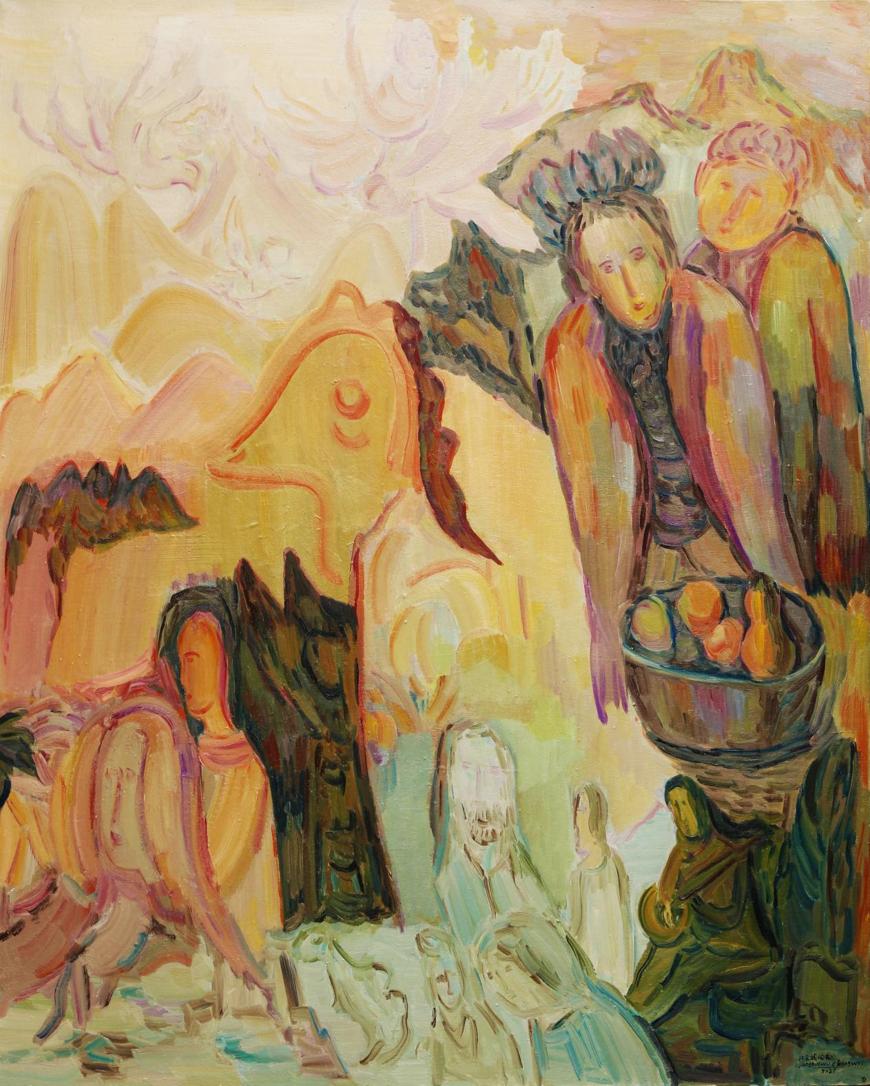 当二十五米暖褐色的长卷在展厅展开,你看见的不是画布,而是一片被月光浸透的荒漠——那里有氧化千年的敦煌砂粒在低语,有舍却直线棱角的圆融生命在呼吸。